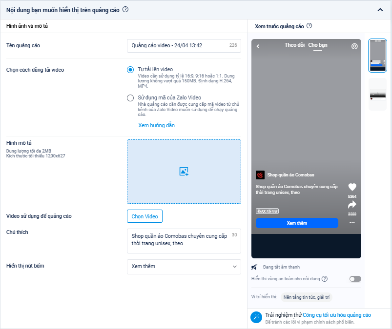 | GÓI KHỞI ĐỘNG | Doanh nghiệp mới, muốn thử nghiệm Zalo Ads. | – Thiết lập tài khoản quảng cáo. – Tư vấn chọn hình thức quảng cáo. – Chạy chiến dịch cơ bản. |